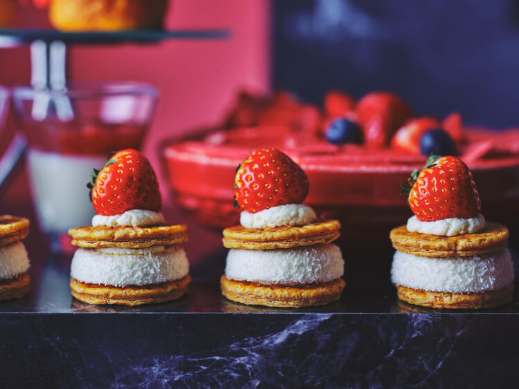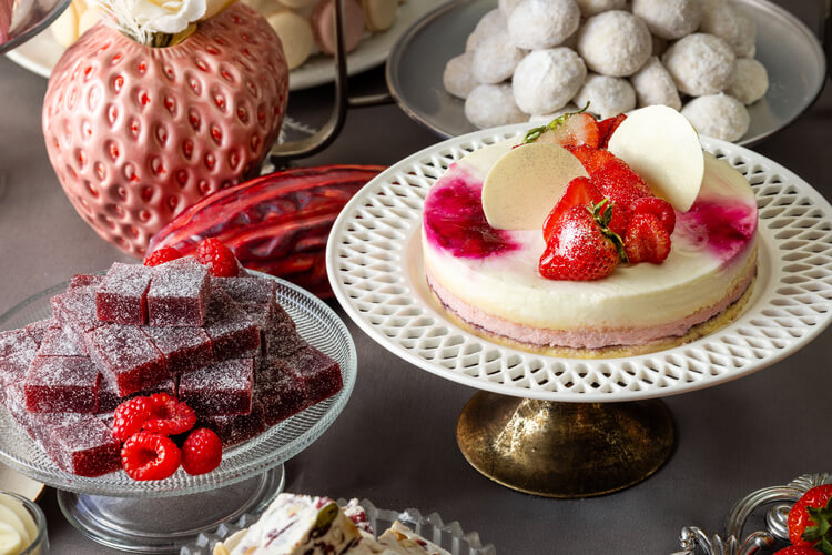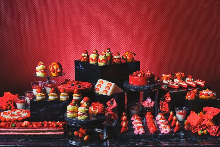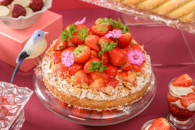 王道のイチゴスイーツに加えて、艶やかで瑞々しいイチゴをふんだんに使ったかわいらしいスイーツ達がずらり。